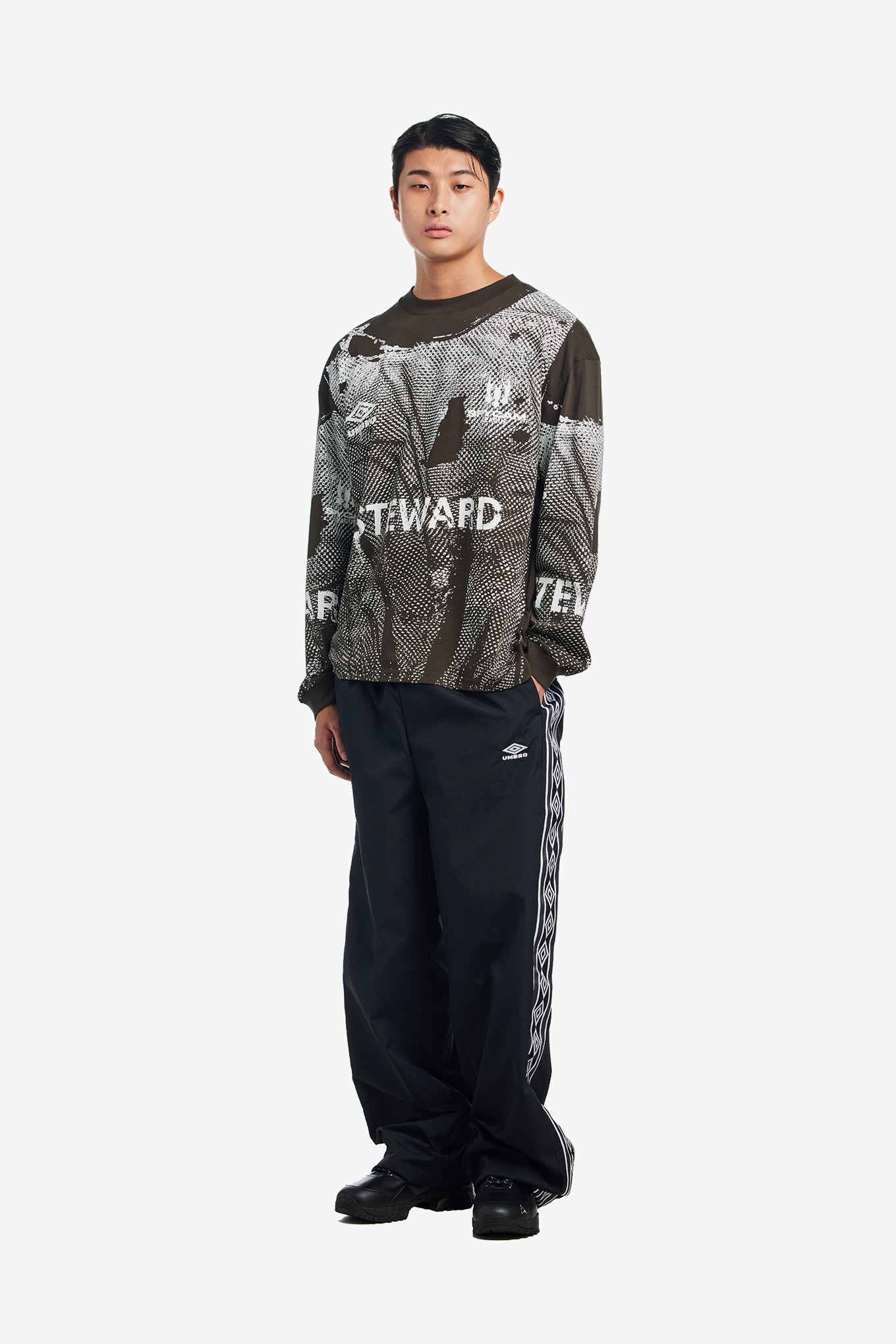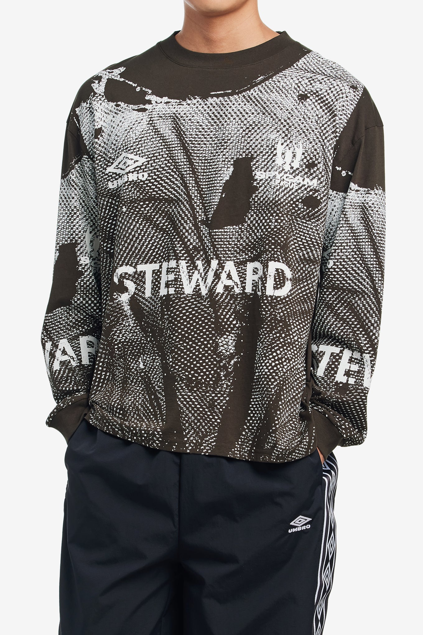 From the Slam Jam x Umbro Autumn/Winter 2026 collection, the Steward Vest Long Sleeve reimagines classic football-inspired apparel through a contemporary lens. Crafted from 100% cotton, it features a boxy fit with ribbed collar and cuffs for a structured silhouette. Bold graphic prints across the front and sleeves give it a standout look, blending sportswear utility with streetwear attitude.