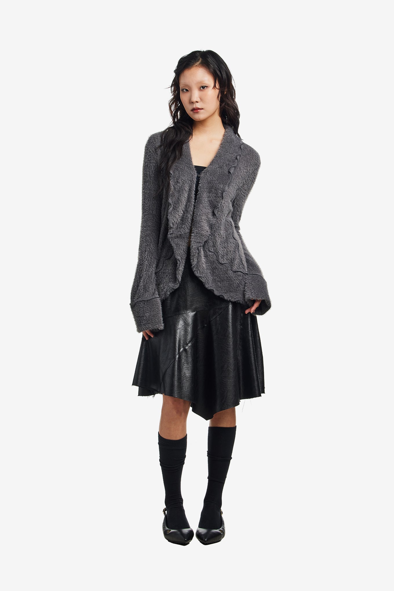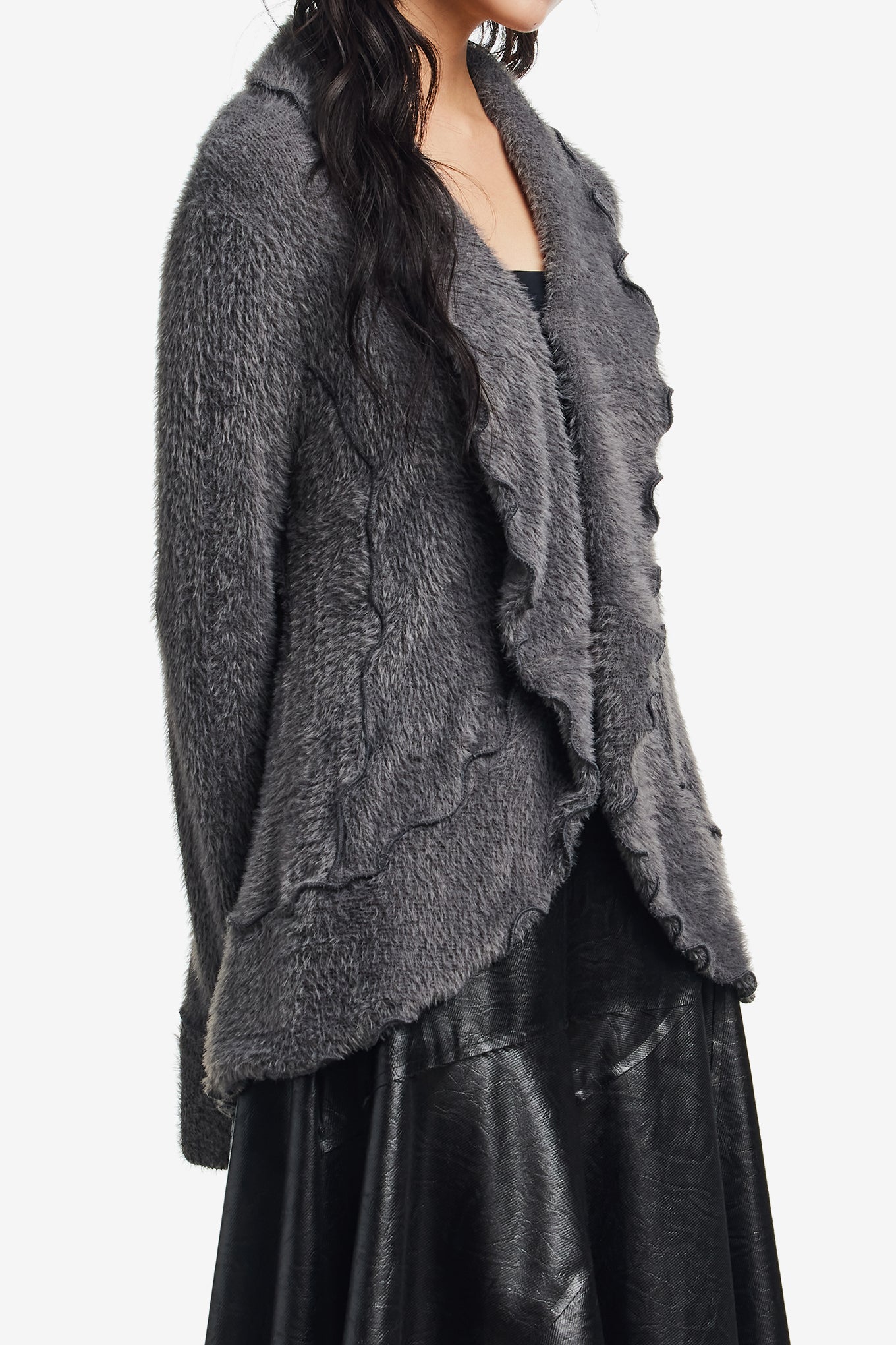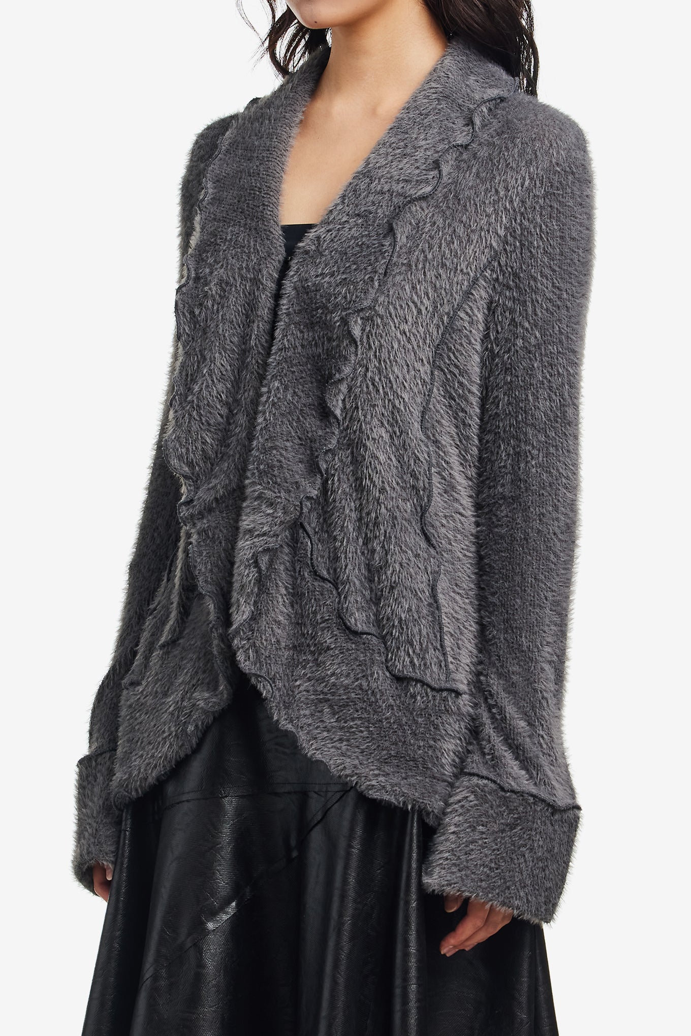 FUZZY RUFFLED CARDIGAN