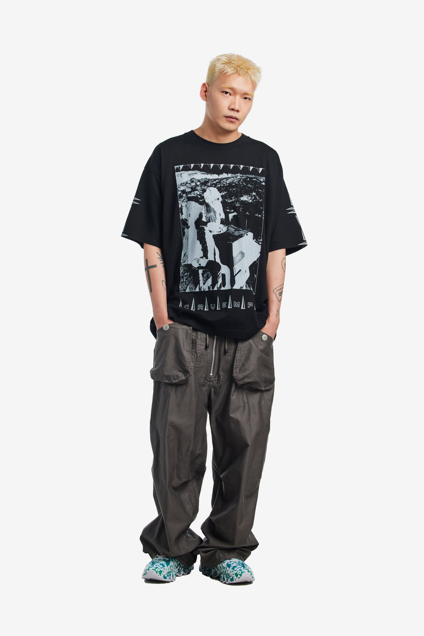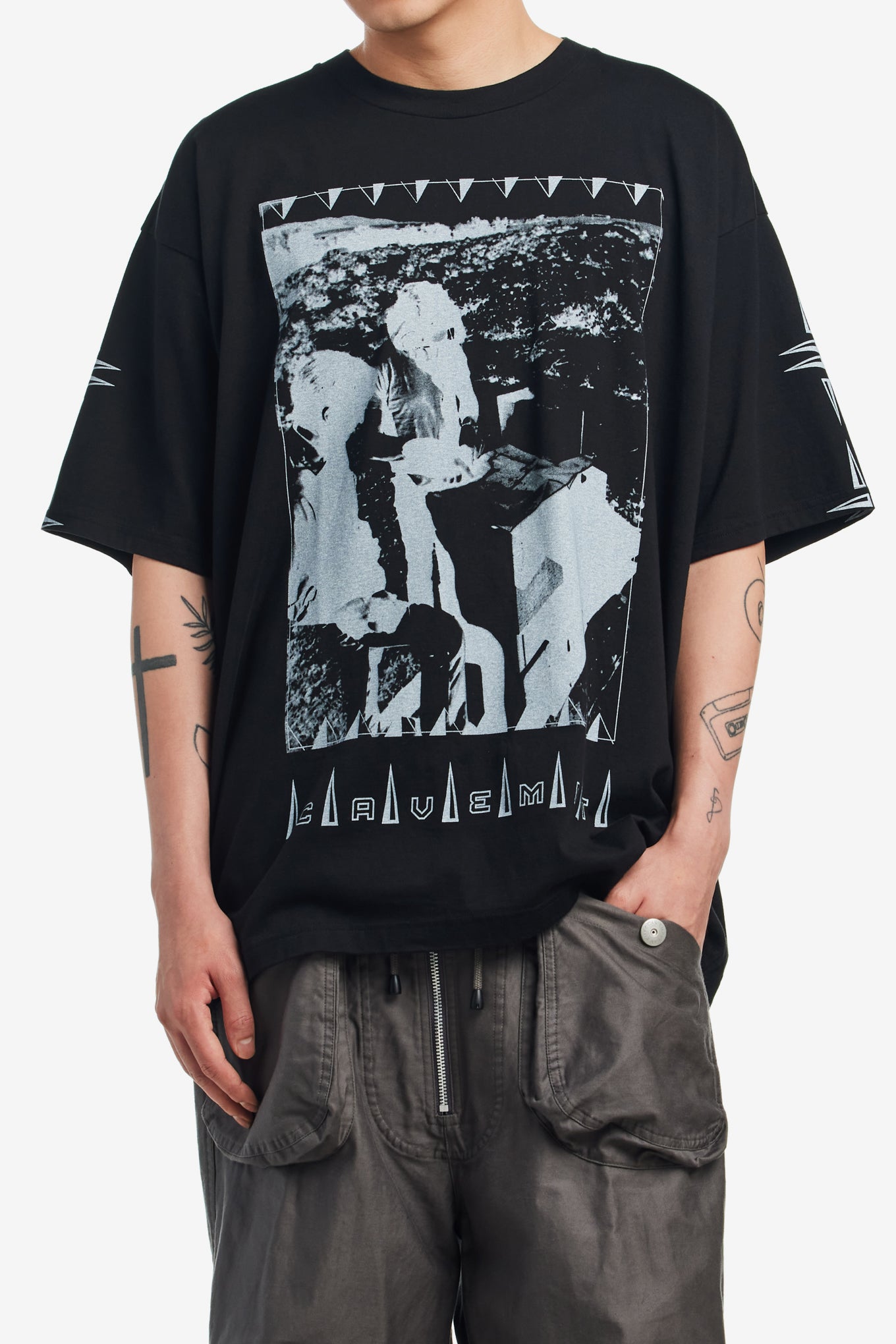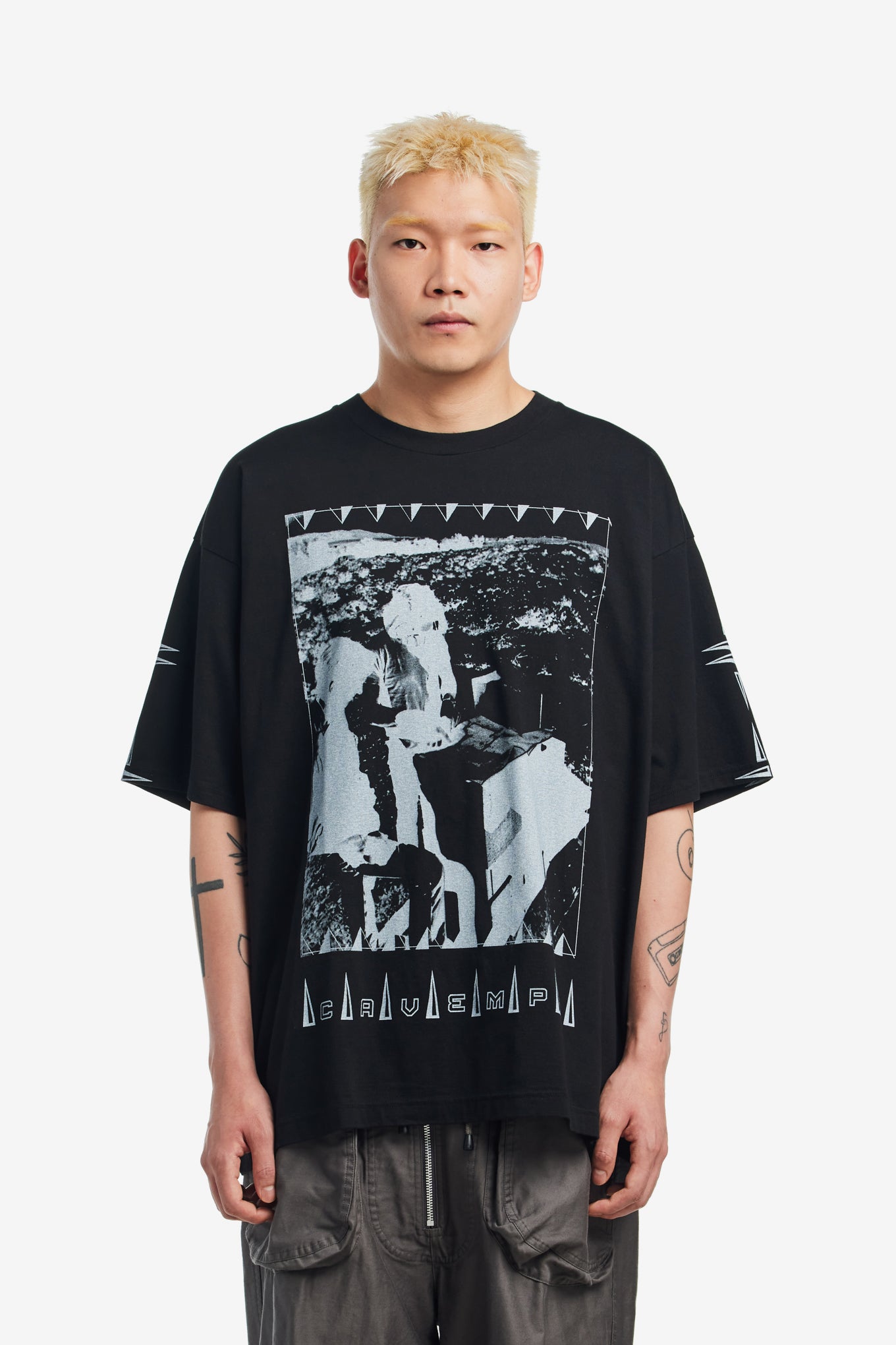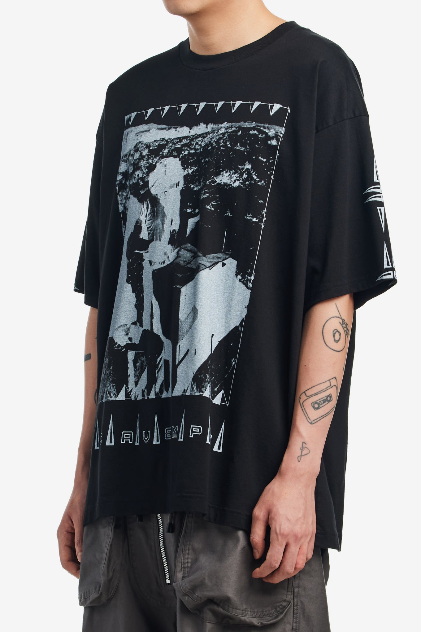 Cav Empt crew neck tee in a lightweight pre-washed cotton with large screen printed graphic on the front and CAV EMPT graphic screen printed on the back shoulders.