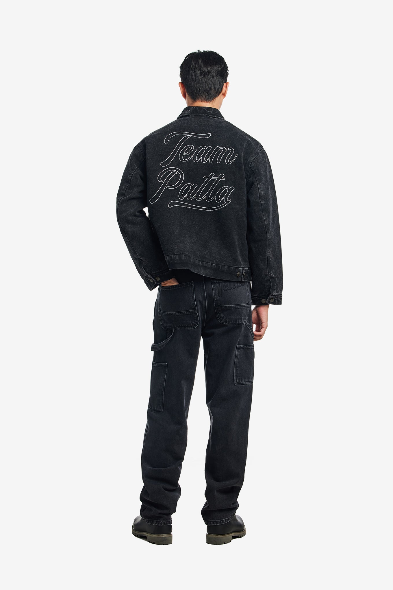 Acid wash look with bar tack branding