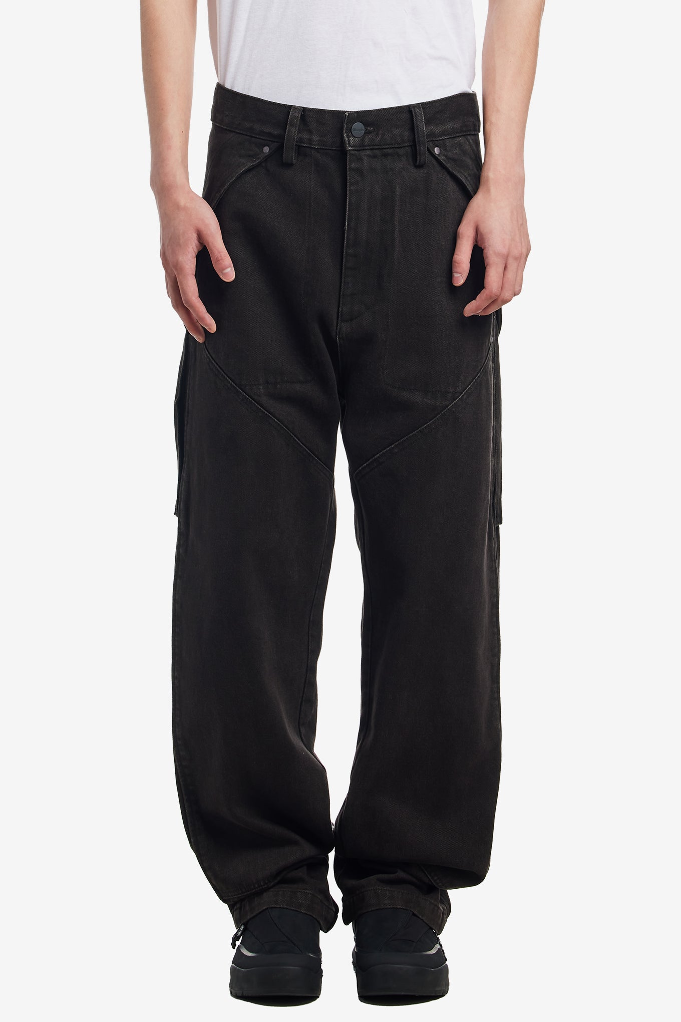 Embroidered contrast rivets on pockets and double knee