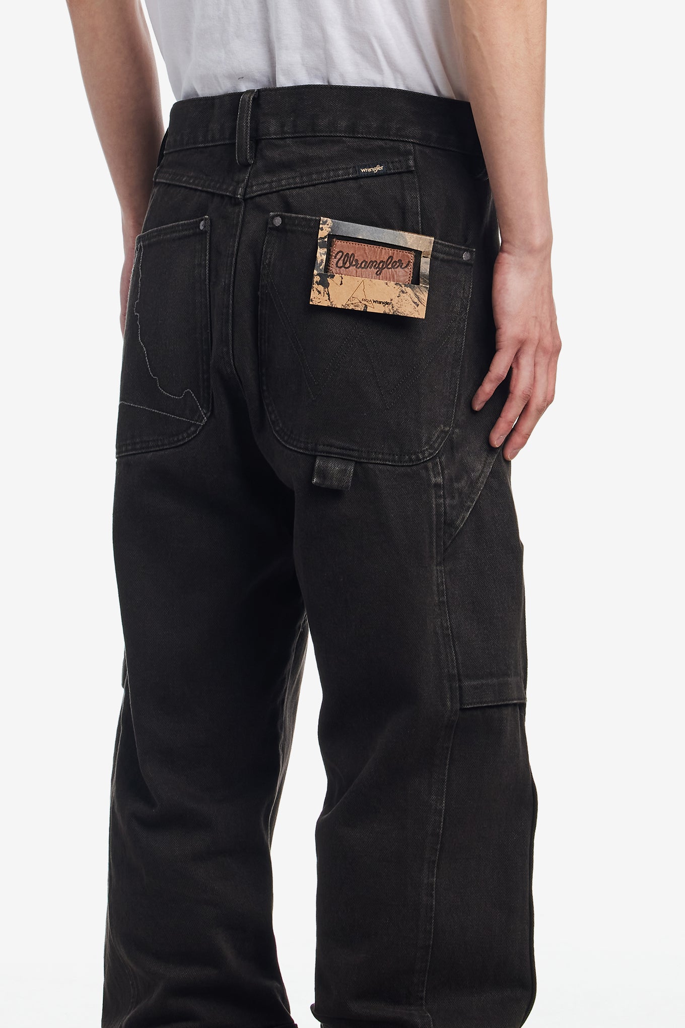 Embroidered ROA logo and Wrangler jacquard label